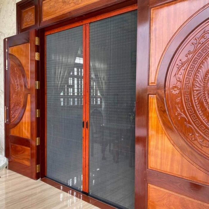 - Được lắp đặt các phụ kiện cửa lưới kèm theo giúp cho phần lưới có thể dễ dàng hoạt động. Ngoài ra còn phần ray bằng nhôm ngoài tác dụng dẫn hướng còn có thể bảo vệ cho toàn bộ phần lưới.